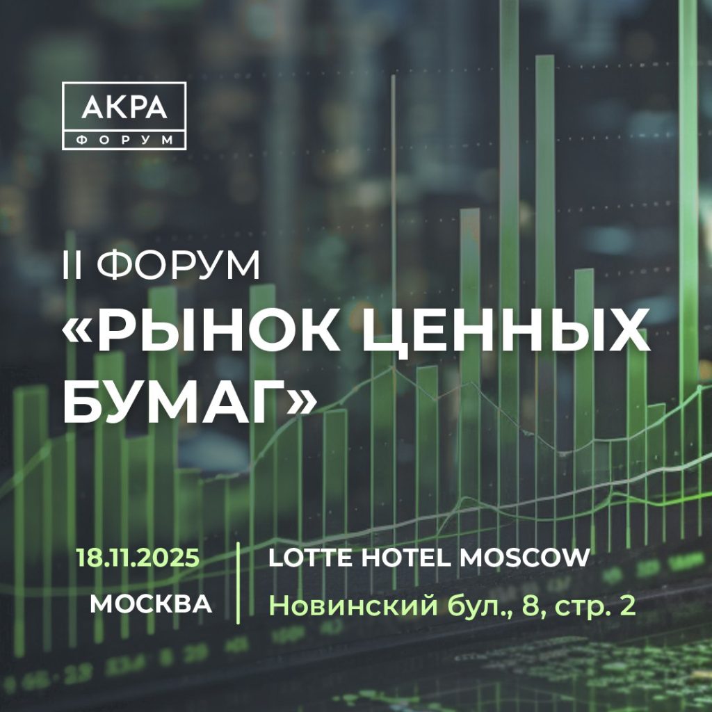 18 ноября 2025 года в Москве АКРА проведет II Форум «Рынок ценных бумаг». Это ключевое деловое мероприятие осени, которое соберет более 500 участников, чтобы определить векторы развития рынка капитала на ближайшие годы.